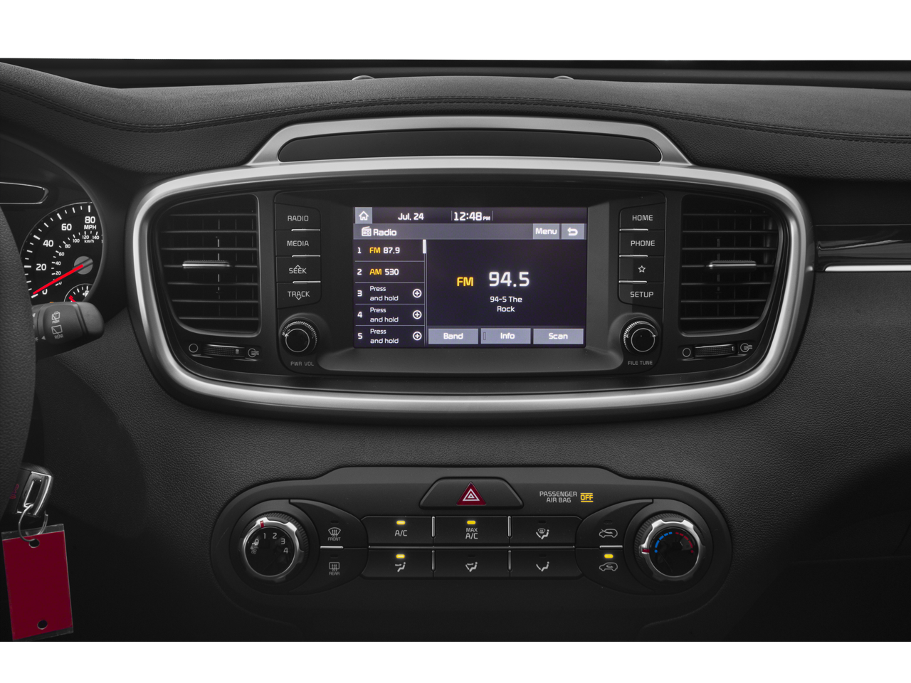 Safety is a top priority, and this Sorento delivers with a suite of advanced features. Electronic Stability Control, Traction Control, and Brake Assist work together to help you maintain control, while dual front impact airbags, side impact airbags, and an overhead airbag provide protection in the event of a collision.