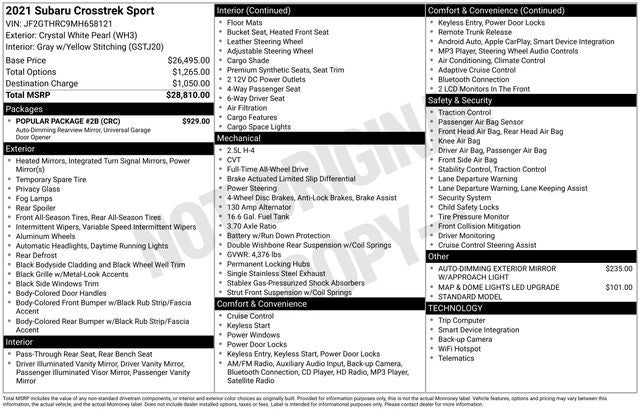 This 2021 Subaru Crosstrek Sport is a true gem, blending rugged capability, advanced technology, and refined style. With its exceptional value and uncompromising quality, it's the perfect companion for your next adventure. Don't miss your chance to experience the ultimate in versatility and performance. Visit our showroom today and let us help you discover the perfect Crosstrek Sport for your lifestyle.