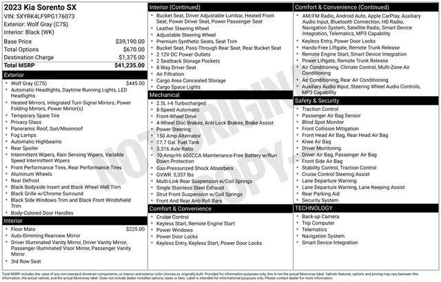 This Kia Sorento SX is the embodiment of sophistication and capability. With its stunning exterior design, refined interior, and impressive performance, it's the ideal choice for those seeking a premium SUV that exceeds expectations. We invite you to experience the exceptional quality and value of this Kia Certified pre-owned vehicle. Visit our showroom today and let us demonstrate why the 2023 Sorento SX is the perfect addition to your lifestyle.