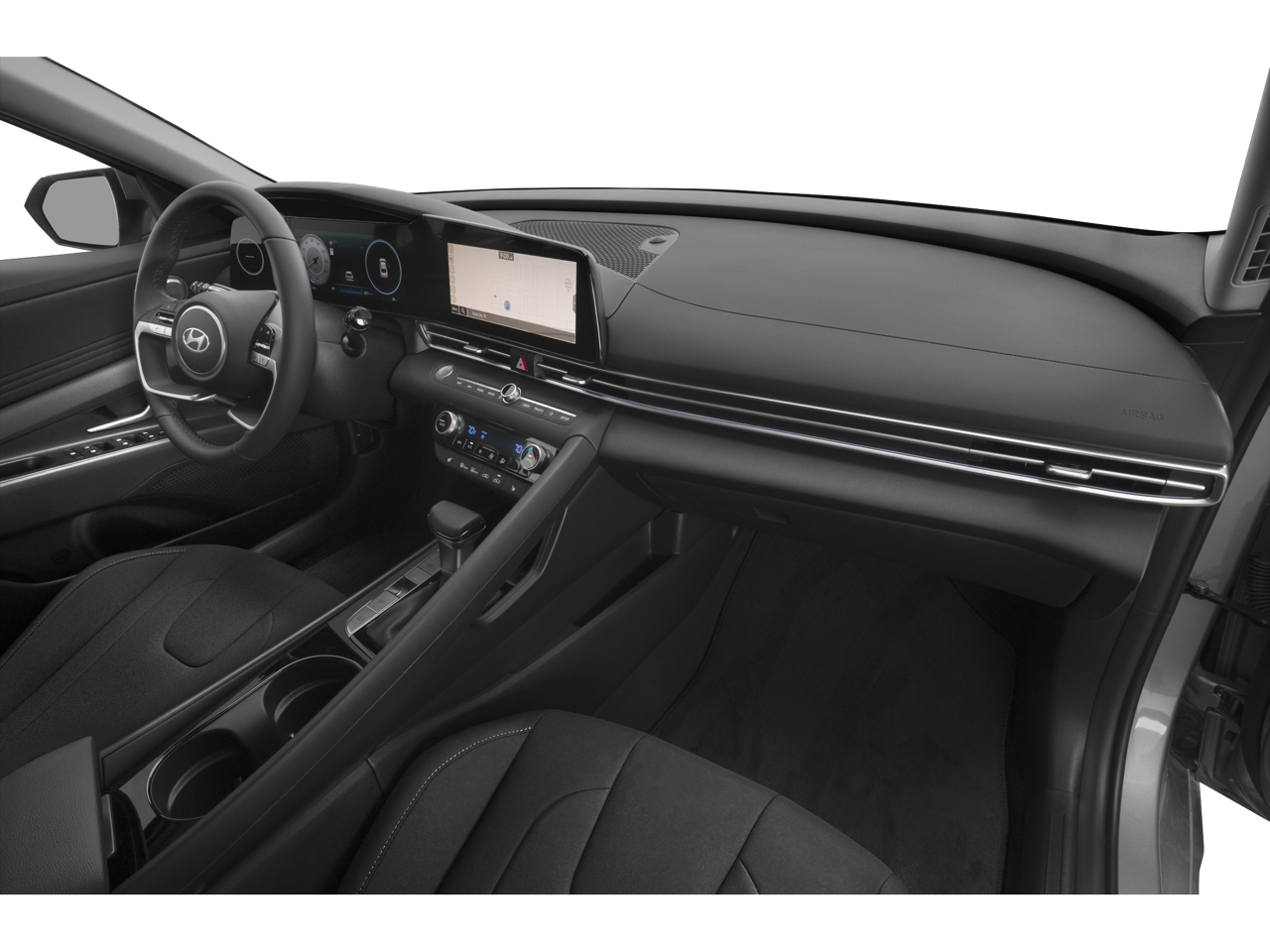 The Elantra's interior is equally impressive, with premium cloth seat trim, a leather-wrapped steering wheel, and a user-friendly infotainment system with Apple CarPlay® and Android Auto™ integration. The dual-zone automatic climate control and heated front seats add an extra level of comfort, while the rearview camera and advanced safety technologies, including ABS brakes, airbags, and electronic stability control, provide peace of mind.
